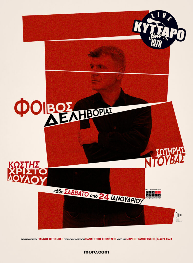 | INFO ΦΟΙΒΟΣ ΔΕΛΗΒΟΡΙΑΣ Σάββατα: 24-31/1 & 7-14-21/2 2026 ΚΥΤΤΑΡΟ Ηπείρου 48 & Αχαρνών www.kyttarolive.gr Τηλ: 210 8224134 Ώρα προσέλευσης: 21.30 Ώρα έναρξης: 22.30 Τιμή εισιτηρίου: 15€ (Ορθίων) Τιμές: Καθήμενοι 80 € φιάλη ποτού ανά 4 άτομα, 40€ φιάλη κρασί ανά 2 άτομα 15€ ποτό ανά άτομο Στις τιμές -δεν- συμπεριλαμβάνεται η τιμή του εισιτηρίου (15€) Μπαρ: Μπύρα/Κρασί: 5€ – Ποτό: 9€ Το εισιτήριο αφορά αποκλειστικά την είσοδο στον χώρο. Για κράτηση θέσης καθημένου σε τραπέζι επικοινωνείτε τηλεφωνικά. Κρατήσεις: 210 8224134 / 6977 641373 Υποχρεωτική προαγορά εισιτηρίου Προπώληση εισιτηρίων: more.com & καταστήματα Nova / Public / Ευριπίδης |